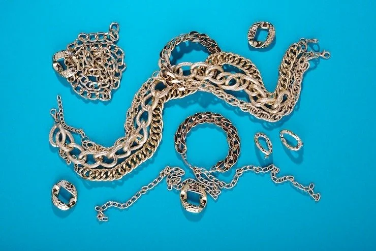 Keeping gold jewelry together with other jewelry can cause tangles and marks. Moreover, pulling or bending fragile metal chains can result in kinking or breaking the metal altogether.